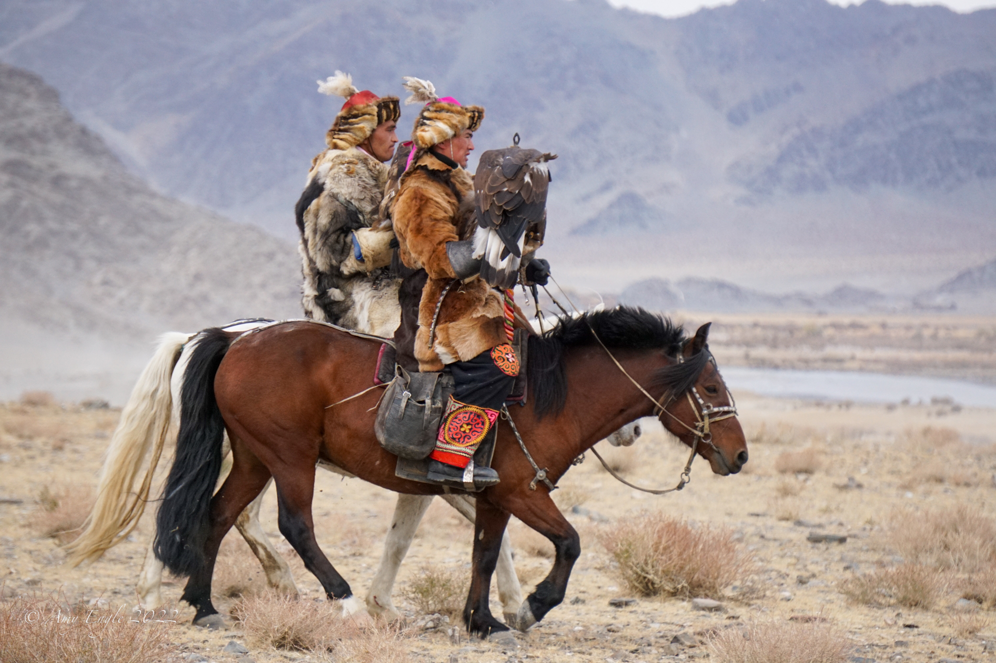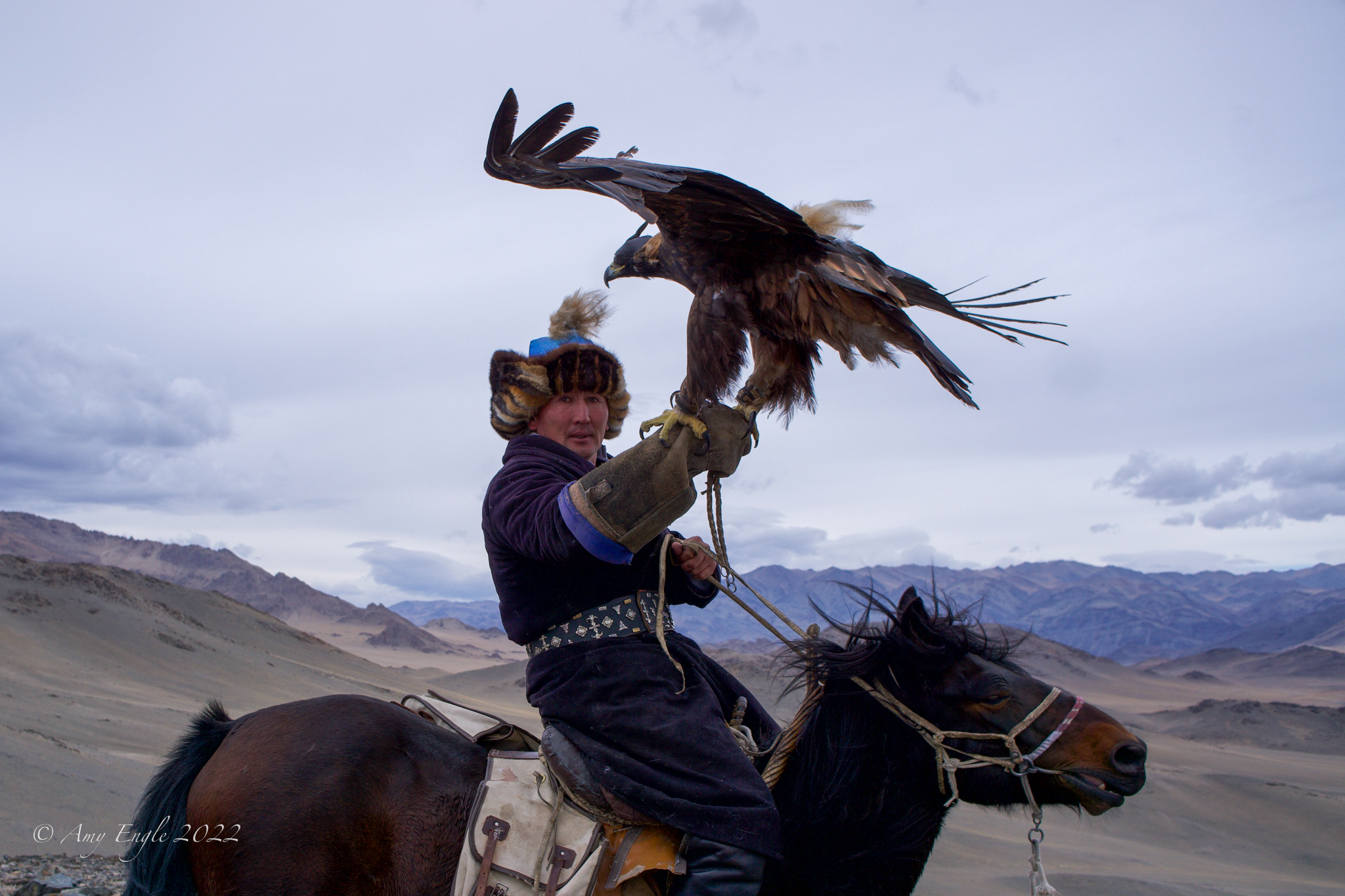 Hunting with female golden eagles is a traditional form of falconry practiced by Kazakh Eagle Hunters of Western Mongolia in the province of Bayan-Ölgii, Mongolia. Their falconry custom involves hunting with golden eagles on horseback, and they primarily hunt red and corsac foxes, as well as hares, marmots, and Pallas cats. This trip offers a week of actual hunting (this is not a tourist performance) while riding to eagle huntsmen on your incredible Mongolian horse. Visits with local nomadic families along the way, and an Eagle Festival at the end make this the ultimate hunting, cultural, and just plain fun experience available.